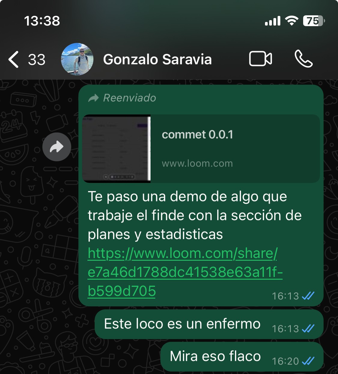 El lunes a última hora, Gonza tenía su reunión con Decker. Ese mismo día, a las 3 de la tarde, recibí un link: Decker había replicado el front de Commet en una app real, la había desplegado y tenía funcionalidades básicas. Todo en un fin de semana, solo con lo que habíamos hablado el viernes.
