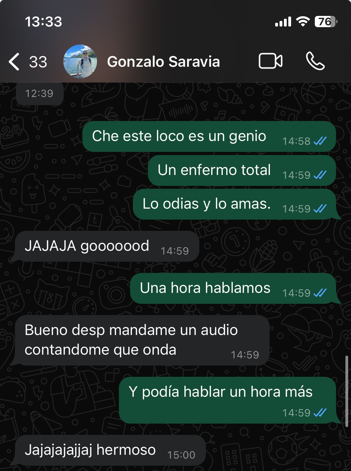 De inmediato, le mandé un mensaje a Gonza en WhatsApp: